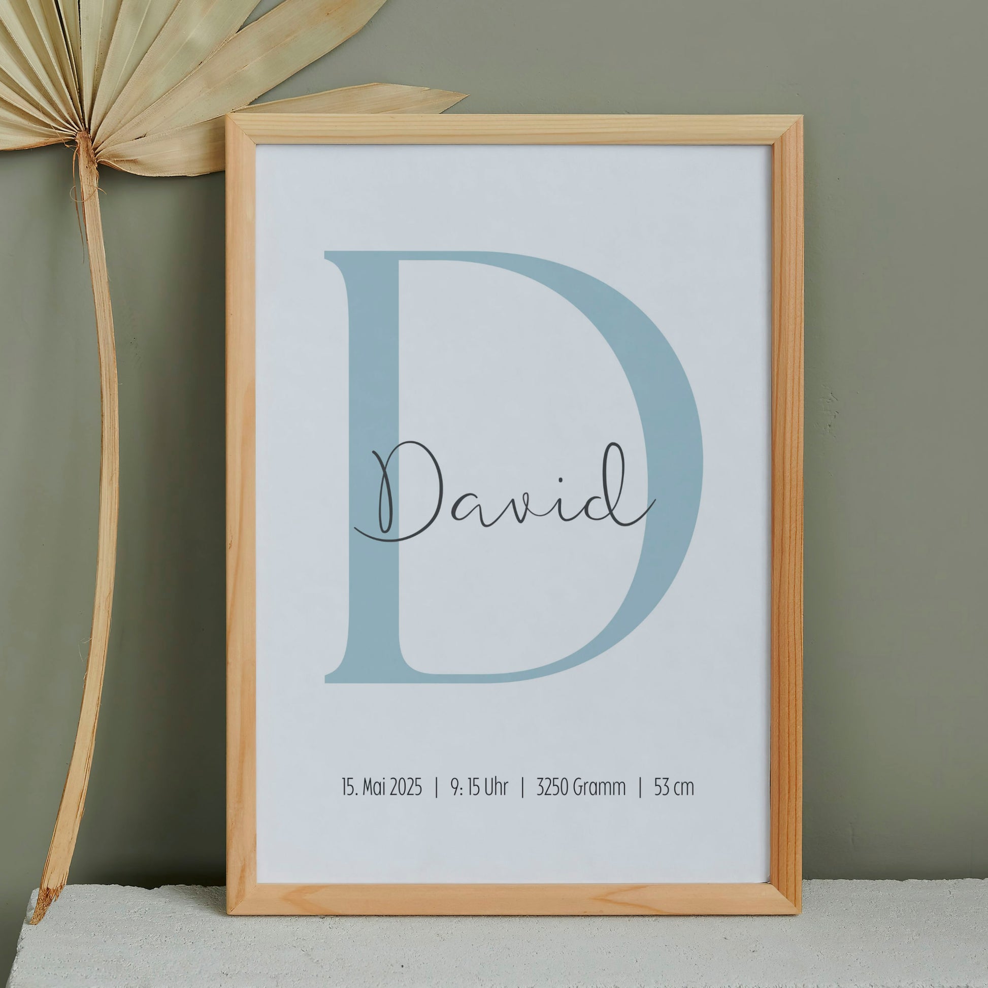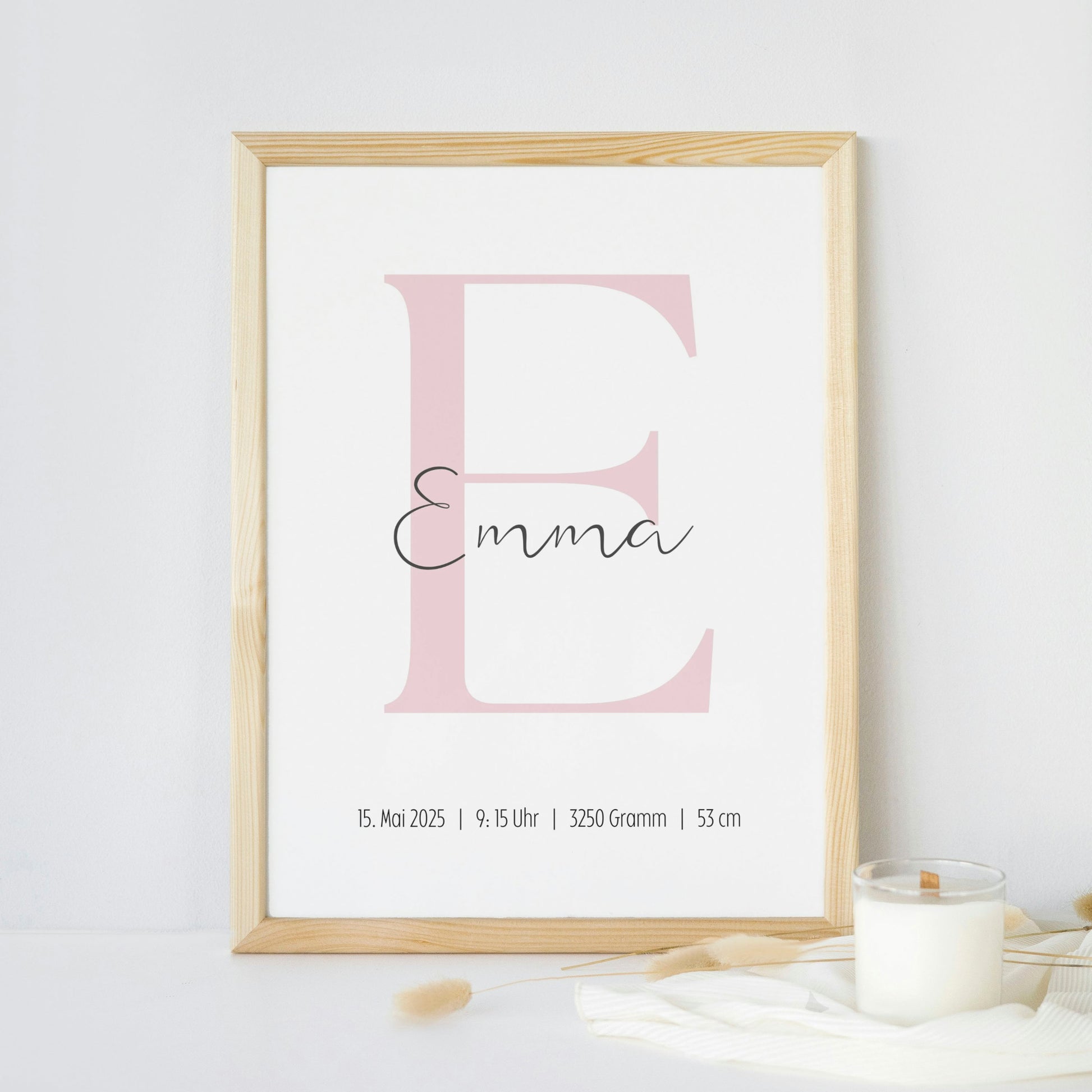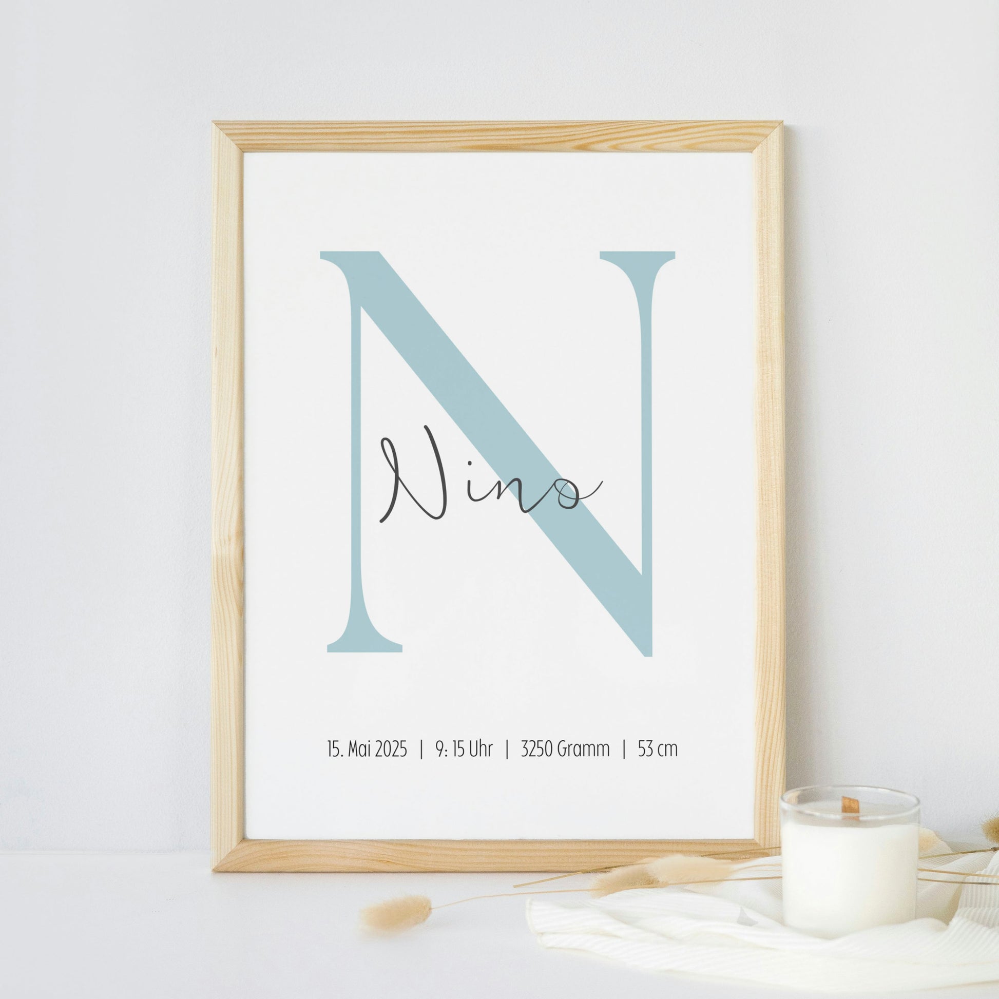 Schenke ein ganz besonderes Erinnerungsstück zur Geburt, Taufe oder zum Geburtstag! Unser personalisiertes Poster vereint den Namen Deines Kindes, seine Geburtsdaten und einen eleganten, großen Anfangsbuchstaben im Hintergrund. Ein individuelles Geschenk, das Emotionen festhält und für immer in Erinnerung bleibt.